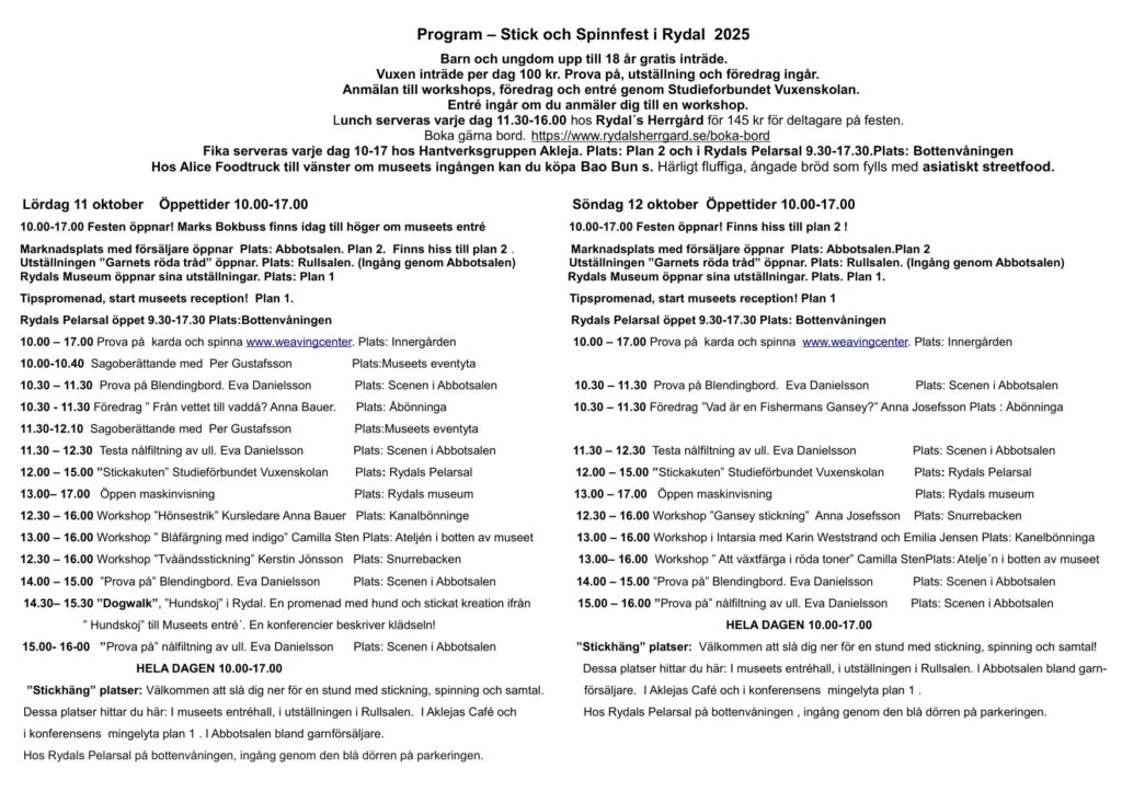 Festen Öppnar. Marknadsplats med försäljare öppnar. Plats: Plan 2 Utställningen ”Garnets röda tråd” öppnar. Plats: Rullsalen. (Ingång genom Abbotsalen) Rydals museum öppnar!